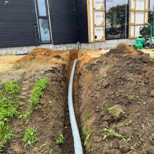 Hos M.K.ENTREPRENØR er vi specialister i etablering af omfangsdræn, der beskytter dit hus eller bygning mod fugtproblemer. Et korrekt udført omfangsdræn leder vand væk fra soklen og fundamentet, hvilket forhindrer skader som fugt i kælderen, svamp og råd. Vi hjælper både private og erhverv med at skabe sunde og holdbare løsninger.